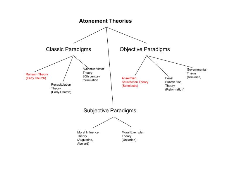 Before moving on, I will acknowledge that I haven’t said too much about Atonement theories that fall under the Subjective Paradigm. Anselm doesn’t explicitly grapple with any versions that fall under this paradigm mainly because the most explicitly formulated Atonement Theories that fall under the Subjective Paradigm don’t really get off the ground until after Anselm’s own writings on the subject. And so the Subjective Paradigm is outside the scope of this analysis. Perhaps I will have more to say about this particular paradigm at a later time.